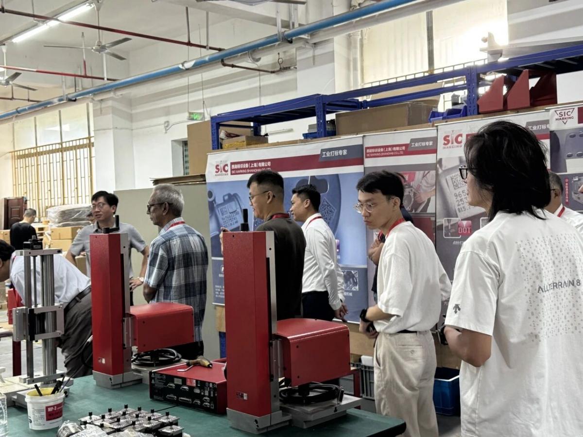 会议首日,经销商代表们率先走进西刻标识的核心生产与研发区域。从承载创新构想的设计研发办公室,到保障产品精度的激光打标测试实验室,再到有序运转的点针式打标设备装配车间、非标设备装配车间,每一处场景都展现着西刻标识的技术沉淀与智能制造实力。“不同于书面资料,亲眼看到设备从零部件到成品的全过程,更能理解西刻产品的可靠性。” 一位来自日本的经销商代表在参访后说道。通过近距离观察非标设备的定制化生产流程,代表们不仅直观感受到西刻标识对 “工业级精准” 的严苛追求,更对产品适配不同区域市场需求的能力有了更深刻的认知。