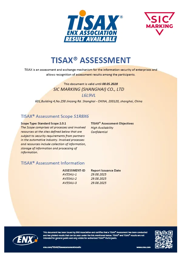 这份认证不仅是一张证书,更是我们对每一位客户的郑重承诺。它显著提升了与合作伙伴在数据交换中的信任与合规保障,确保每次技术对接和数据交互均处于高标准的安全防护之下,全程可靠、无忧。同时,TISAX AL2 认证也充分体现了西刻在合规管理和综合技术实力上的硬实力——从高效的激光清洗方案,到严谨的信息安全体系,我们始终以全方位的专业能力,为客户的高效生产与安全合作保驾护航。