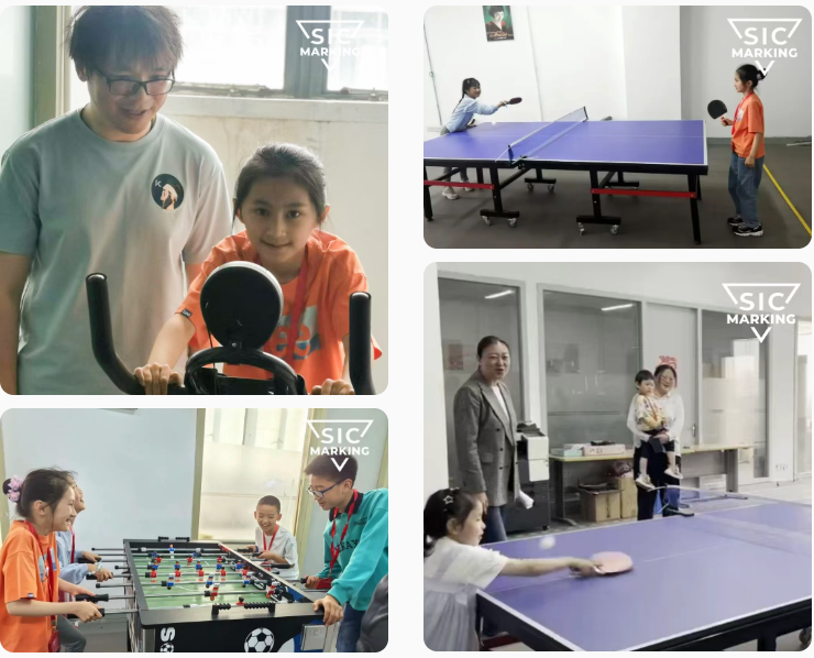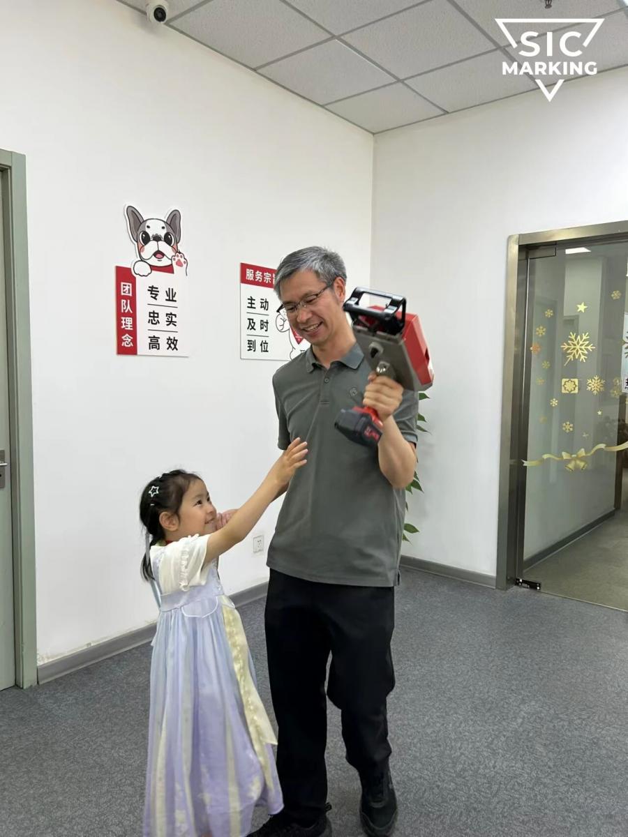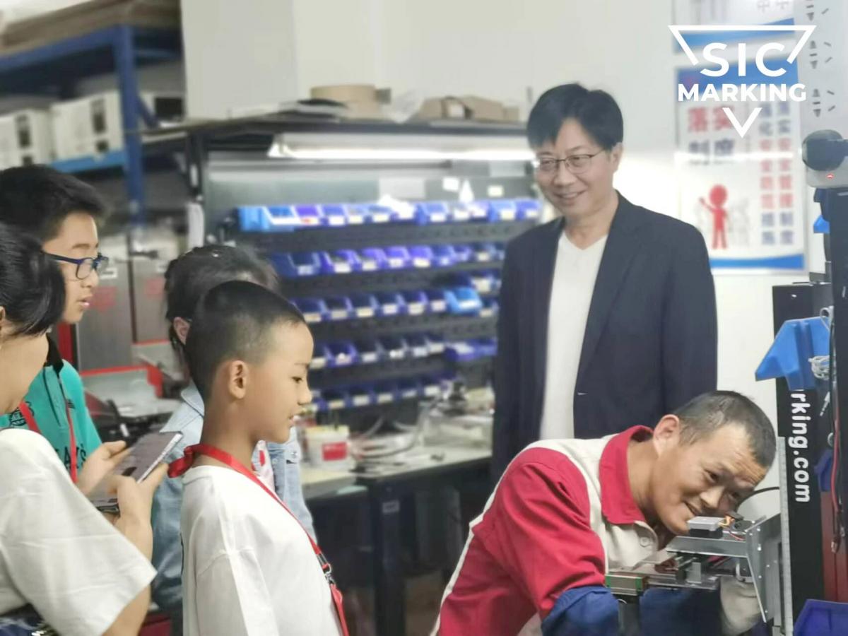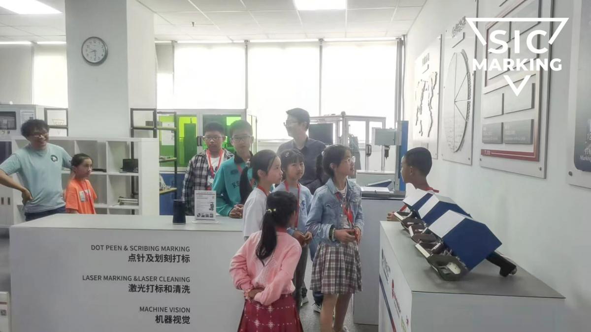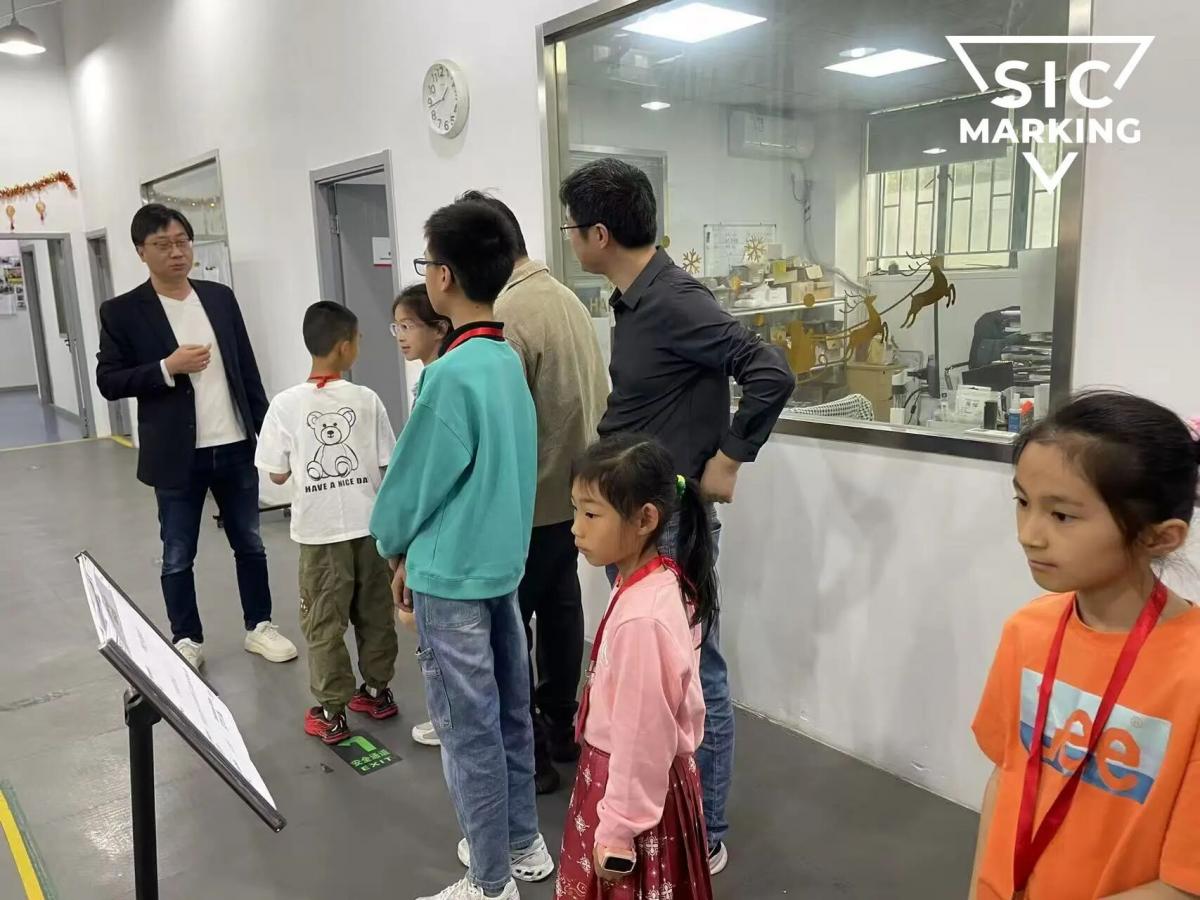 展厅里各式打标机立刻跳进小朋友亮晶晶的眼睛里,惊喜声"哇哦"个不停!接着探秘激光打标测试实验室和设计研发办公室,这里藏着超多超酷的创意小秘密;最后打卡了点针式打标设备装配车间和非标设备装配车间!一路上,孩子们睁着好奇的大眼睛,把公司超厉害的技术创新魔法和智能制造实力都牢牢记在小脑袋里!