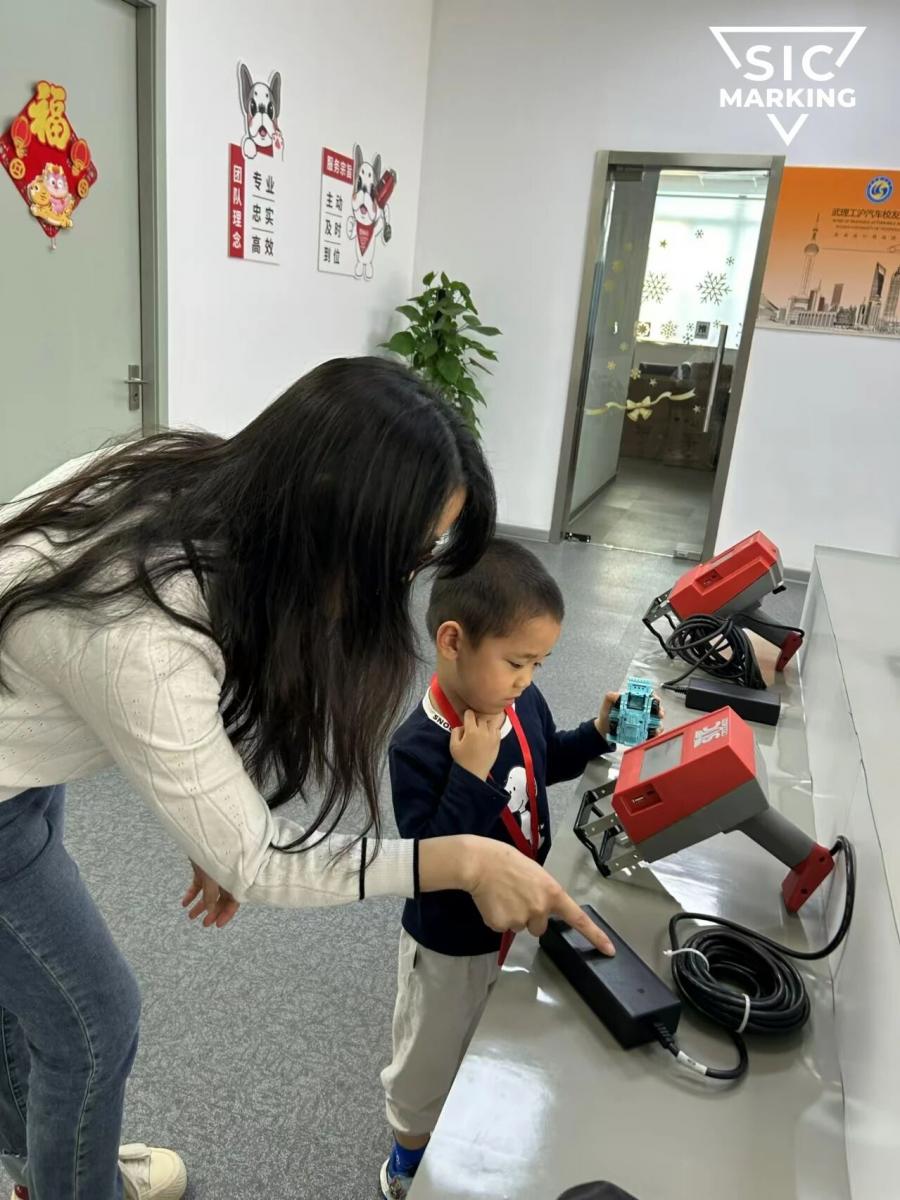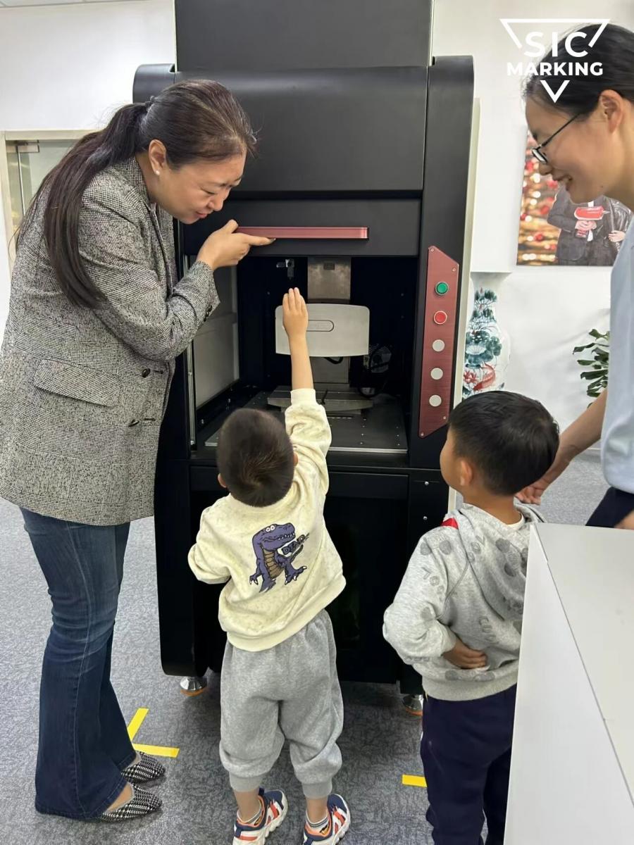 在实验室,萌娃们迎来了超有趣的技能课堂!公司的“激光打标机神器”闪亮登场。萌娃们亲手操作激光机,零距离接触激光打标技术,让孩子在安全操作中感受智能制造魅力,给圆珠笔注入独特灵魂,标记童年专属印记。